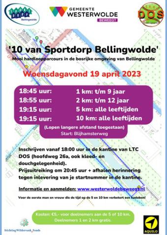 Aanmelden en startnummers zijn vanaf 18.00 uur af te halen in de kantine van LTC DOS, Hoofdweg 26a Bellingwolde.